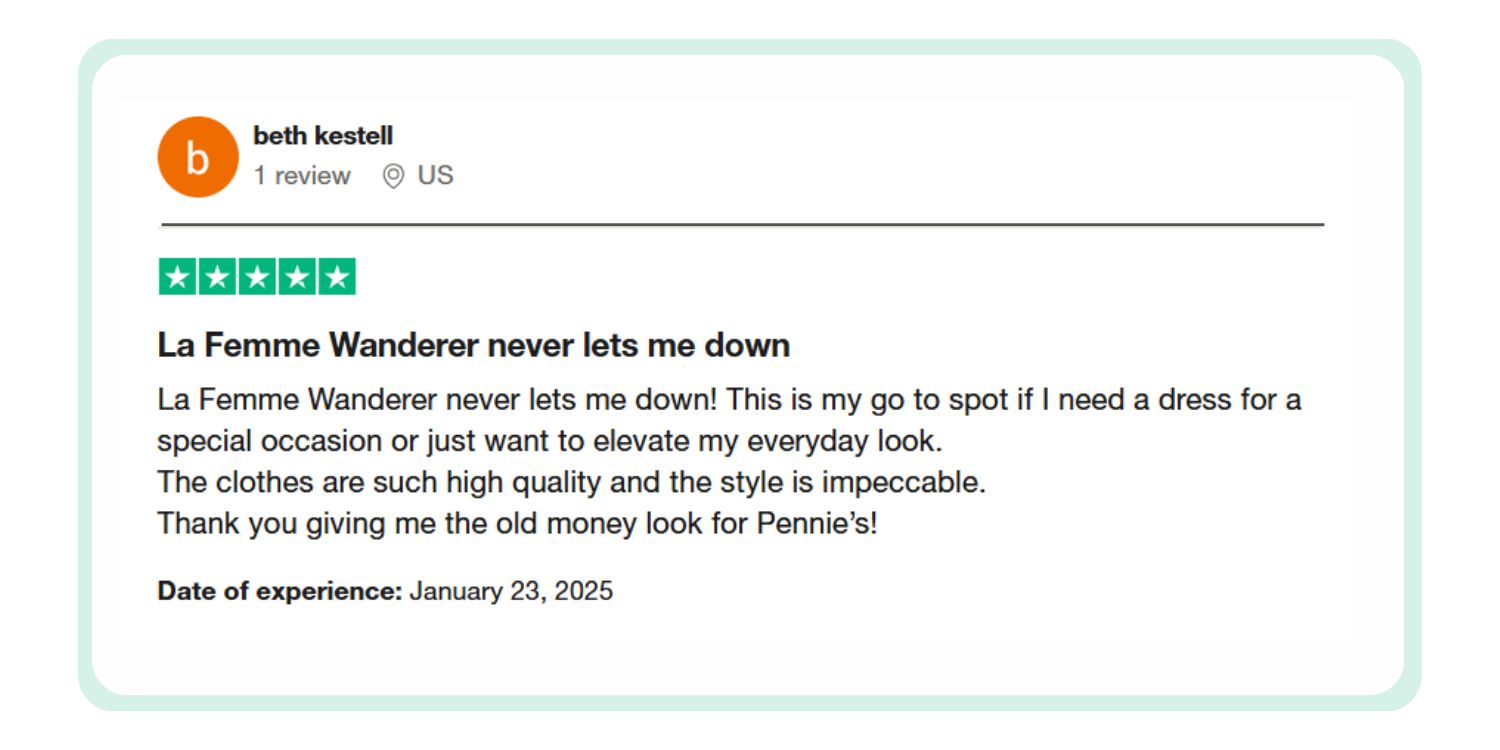 Στη LA FEMME WANDERER, η επιτυχία μας οφείλεται στην εμπειρία των επαγγελματιών μας στον χώρο της μόδας. Με πολυετή εμπειρία στον κλάδο, η ομάδα μας φέρνει έναν πλούτο γνώσεων και μια έντονη ματιά στις τάσεις σε κάθε συλλογή. Από το σχεδιασμό έως την εκτέλεση, είμαστε αφοσιωμένοι στην παροχή ποιότητας και στυλ που ξεπερνά τις προσδοκίες. Ανακαλύψτε το πάθος και την ικανότητα των έμπειρων επαγγελματιών μας στον χώρο της μόδας στη LA FEMME WANDERER.